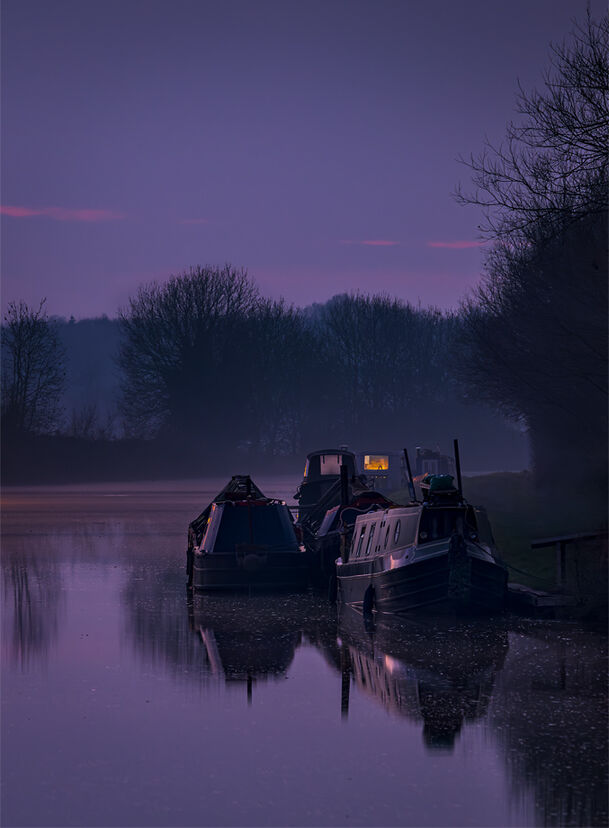 TRANQUIL WINTER SUNSET ON THE GLOUCESTER AND SHARPNESS CANAL - As day fades to dusk, the still waters of the Gloucester and Sharpness Canal hold the last light of winter — calm, quiet, and timeless.
