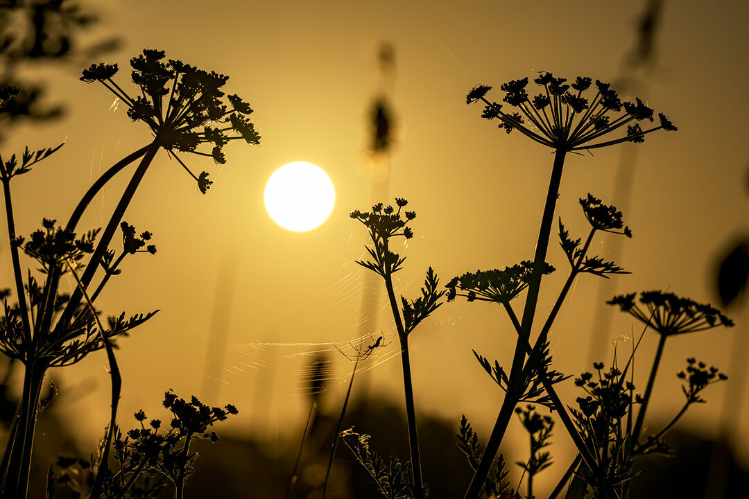 SPIDER IN SUNLIT WEB AT DAWN - Taken just as the sun was rising lighting up the landscape, lighting up everything around it in a golden glow.